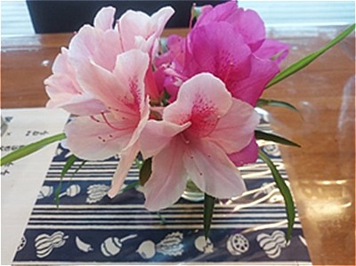 4月の桜の絵画と、桜が終わった後に咲くつつじを生花で並べてみました。