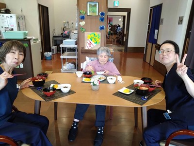 ご家族にも実際に食べて頂き、職員も今日だけは一緒に!(^^)!