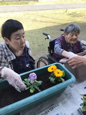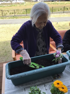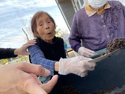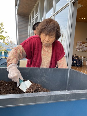 「きれいかね~」「ちゃんとほぐしてから植えなんとよ!」など声を掛け合いながら