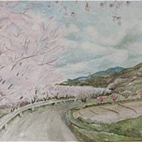 西原村に咲く桜並木を描かれました。