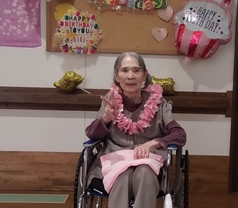 職員や利用者の方たちよりお祝いの言葉や歌を頂けとても喜ばれておられました。