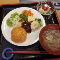 メインは少し小さめのデミグラスソースのかかったハンバーグです