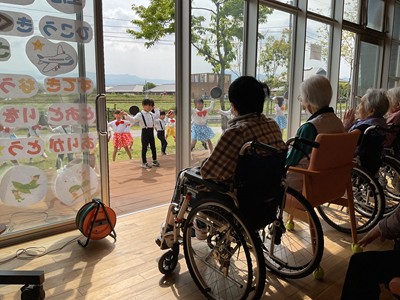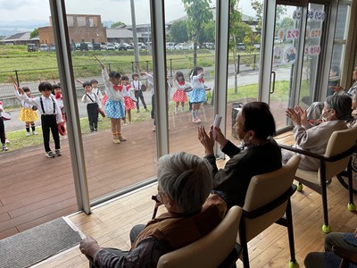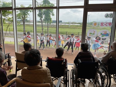 ひこうき組の園児の皆さんのダンスは利用者様の憩いの時間♪