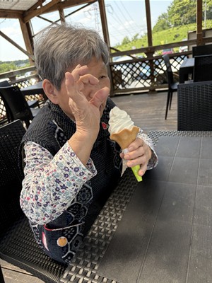この日は暑くて、ソフトクリームもとても美味しかったようです。