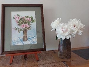 玄関の絵画から派生して季節を伝える花が並びました。