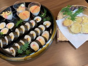 ご要望の聞かれていた「巻きずし」と「いも天」作りを先日行いました(^.^)