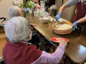 酢飯作りの際には、ご利用者様にも団扇を仰いでお手伝い頂きました(^^♪