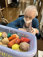 ご利用者様とレクリエーションで野菜の袋詰めを行いました。