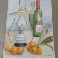 玄関は7月の絵画と、今年も咲いた胡蝶蘭の花です。