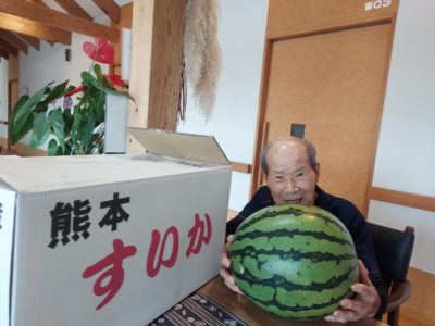 でっかい西瓜と高森の高原野菜キャベツ頂きました!