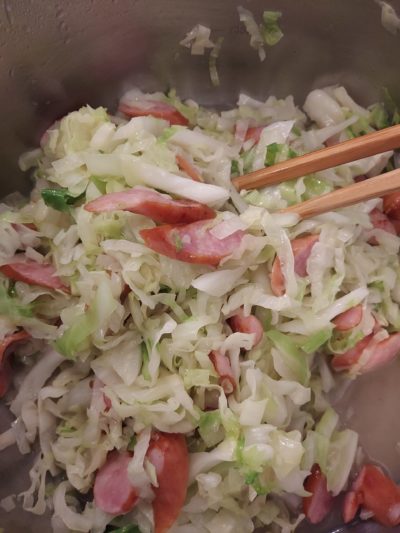 ウィンナーと炒めて、朝食の副菜にしました。