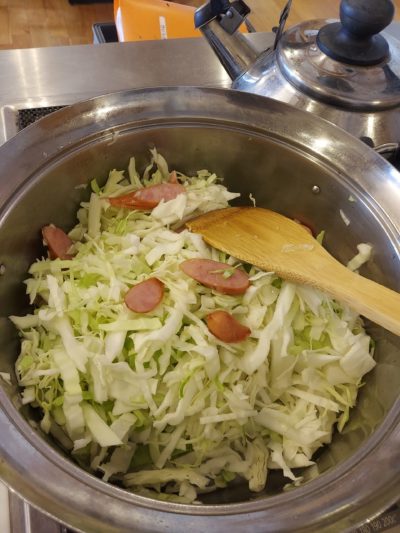 ウィンナーと炒めて、朝食の副菜にしました。