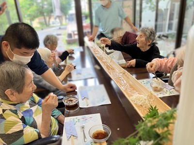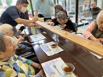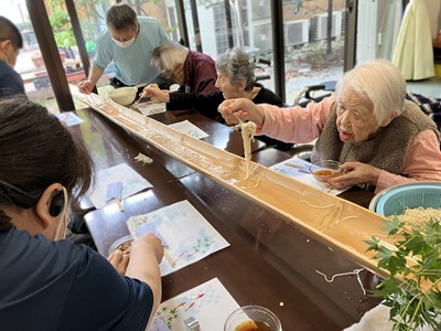 最初は箸で掴んでおられましたがなかなか取れず流れて・・・