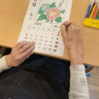 月末になると翌月のカレンダーを塗って頂き、居室に飾って日にちを確認したりされます。