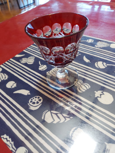 グラスは切子ガラスの容器に入れると、おしゃれになる。
