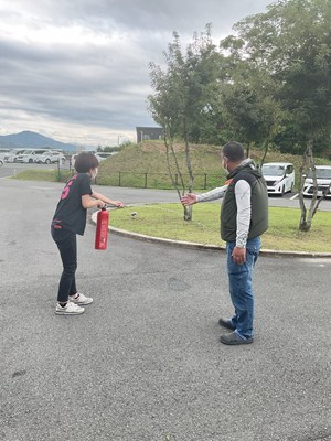 火災時の注意点や消火器の使用方法など学び、実際に利用者様(代表数名)に避難して