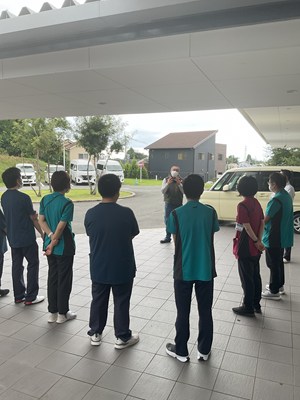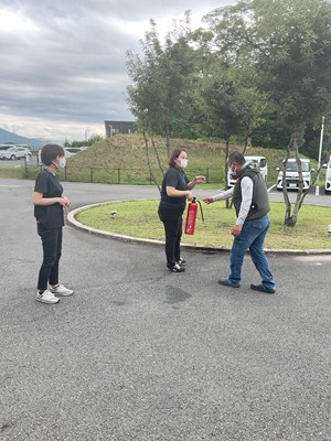 火災時の注意点や消火器の使用方法など学び、実際に利用者様(代表数名)に避難して