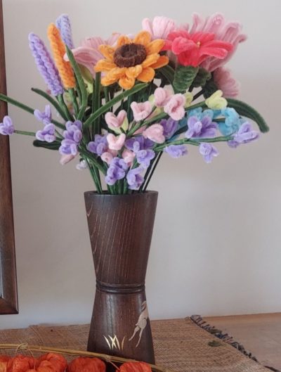 先日花束でもらった、モールで作ったお花です