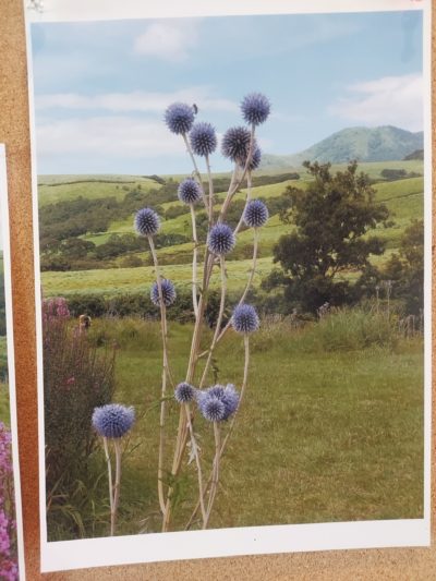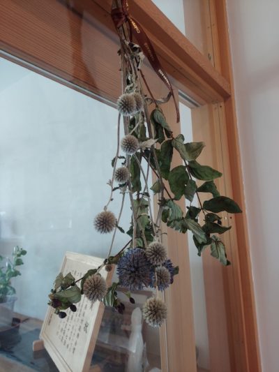 おみやげのヒゴタイはドライフラワーにして玄関に飾っています。