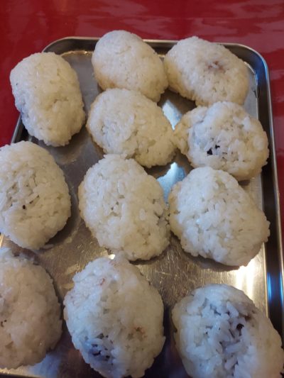 又丸くしたこしあんに上からもち米で包んで・・・