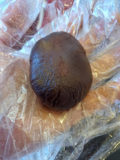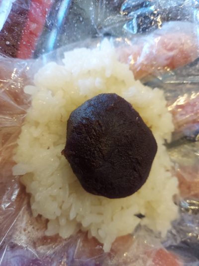 又丸くしたこしあんに上からもち米で包んで・・・
