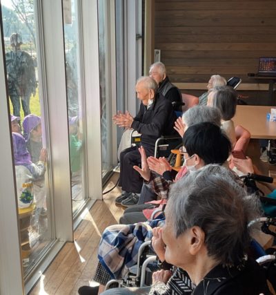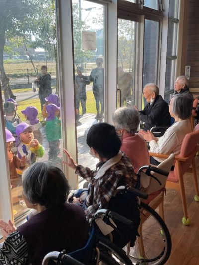 可愛い園児の笑顔に利用者様もほっこり(*^-^*)
