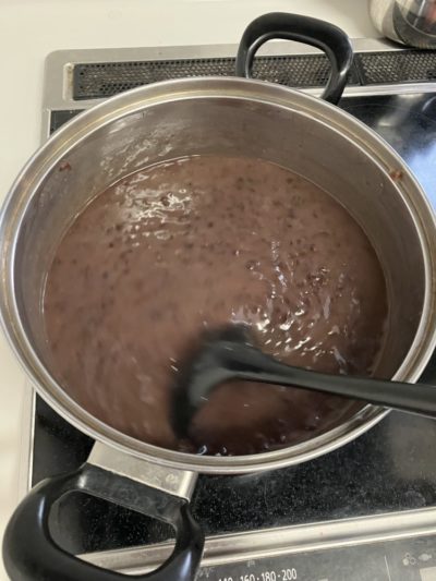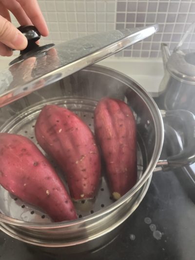 午後より、粒あんこでぜんざいを作り、蒸し芋作り🎵