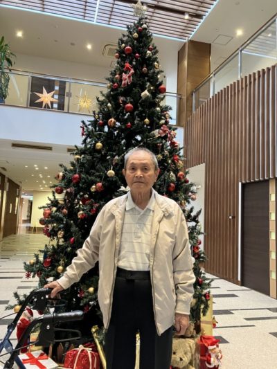 最後にひろやす荘の玄関に、、、大きなクリスマスツリー🎄⭐で記念撮影✨