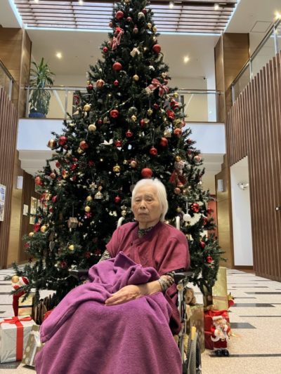 最後にひろやす荘の玄関に、、、大きなクリスマスツリー🎄⭐で記念撮影✨
