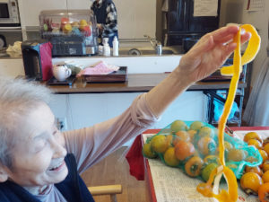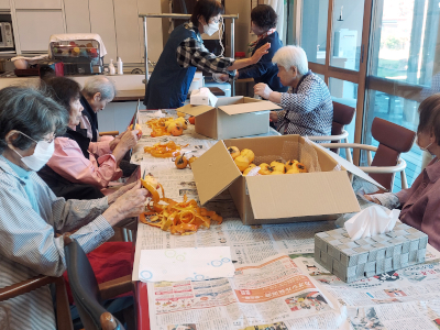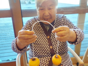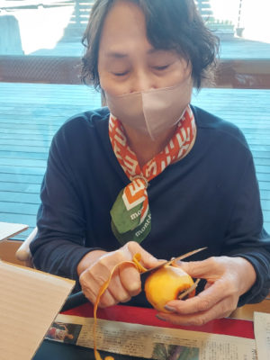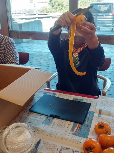 長年の主婦業で、皆さん柿を剥くのは上手です