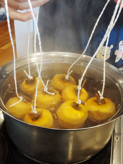 「去年したと思ったのに、もう干し柿の時期たいね。」