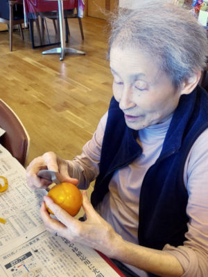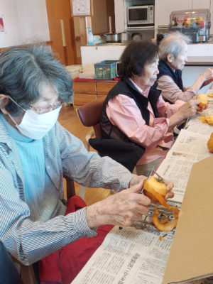 長年の主婦業で、皆さん柿を剥くのは上手です