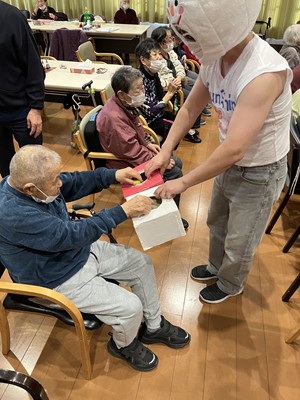 普段とは違う姿に戸惑う職員とご利用者様(;’∀’)