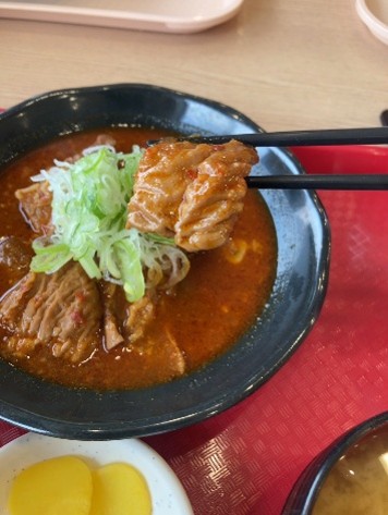 ピリッと辛いスープで煮込んだホルモンは柔らかく、旨味と甘味が口いっぱいに広がり、ご飯がすすみます🍚