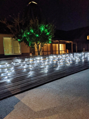 塀にかけた、つららイルミネーションも配置及びお試し点灯完了です