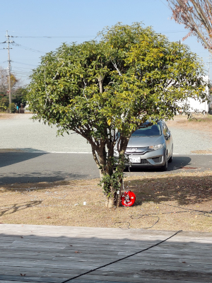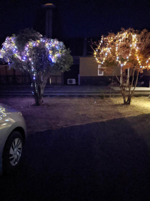 2本の木に電飾配置完了