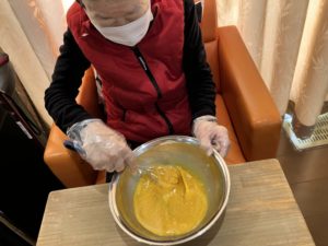混ぜる工程では利用者様と一緒にまぜまぜしました。