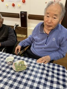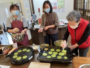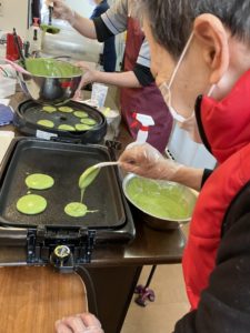 今年最初の食レクリエーションは「抹茶どらやき」を作りました。