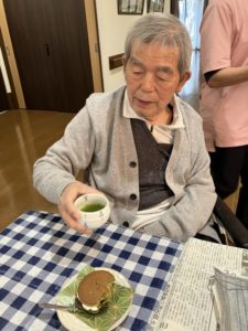 今年最初の食レクリエーションは「抹茶どらやき」を作りました。