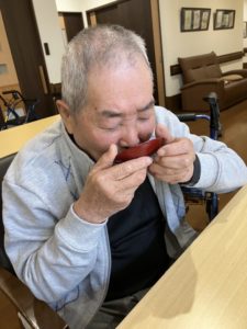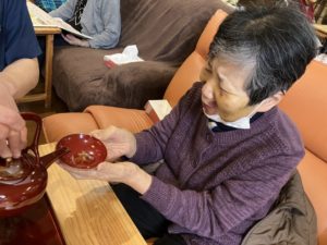 「お正月ですね」「あ~!喉に来るね」との言葉聞かれ、普段は目を閉じている事が多い方もお屠蘇を飲むとパッチリと目を開かれていました😊