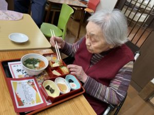 お雑煮は餅の代わりに『餅風ムース』が入っていましたが「美味しいね」と召し上がられていました。