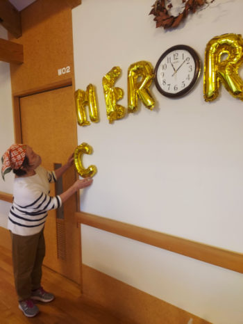 クリスマス会は、皆さんと一緒にフロアの飾りつけから・・