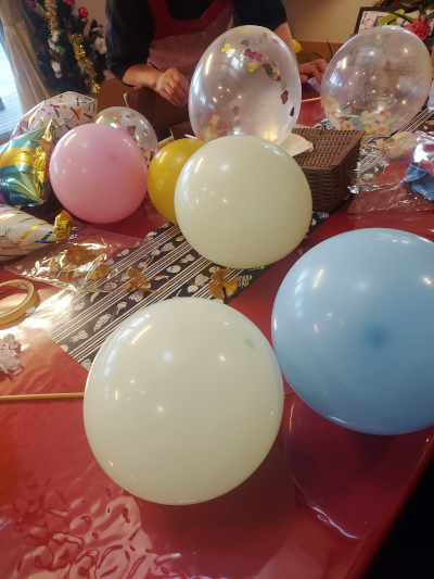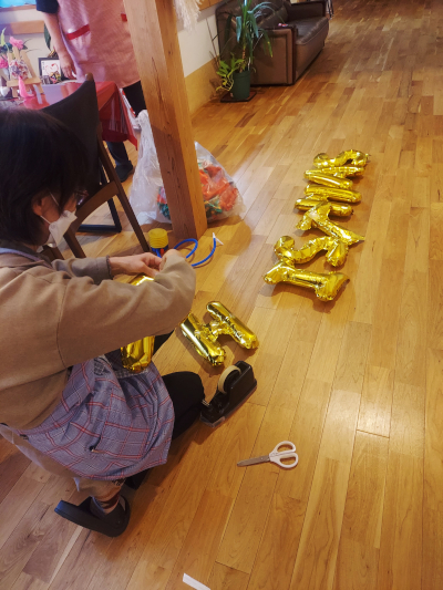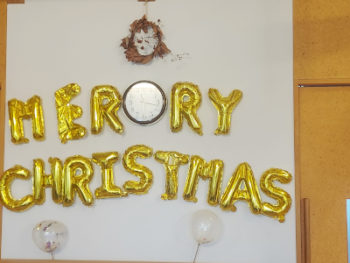 今年のフロアの飾りつけは、風船を主に飾りました!