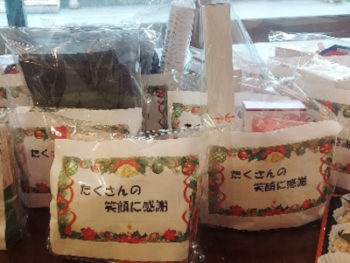 お菓子も皆様からの差し入れを袋に詰めてプレゼント!