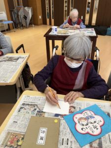 皆さん好きなお手本を選ばれて、熱心に書かれていましたよ。