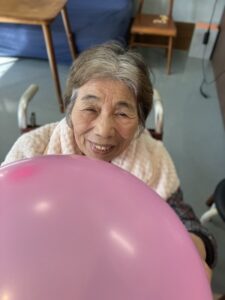 皆様とお祝いした後は風船バレーを行いました。