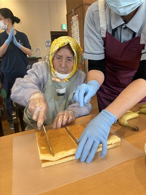 チョコをくぐらせる具材の、スポンジやバナナをカット。