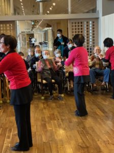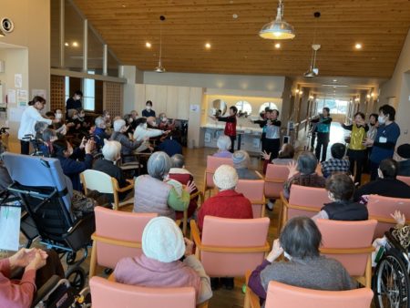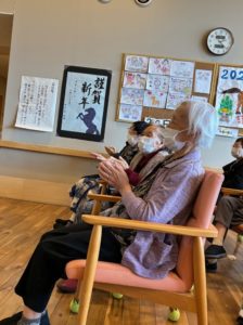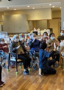 懐かしい歌謡曲に職員も共に体をゆらし、歌を歌ってたのしいひと時を