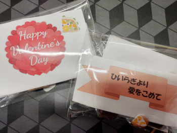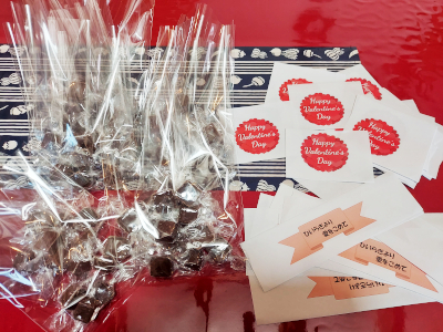 チョコレートを袋に詰めて、パッケージは手作りしました。
