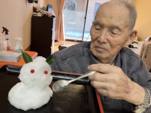 寒かったですが、雪が少し積り皆さんとちょっとだけ雪を眺めて、雪うさぎ🐇を作りました。(^○^)